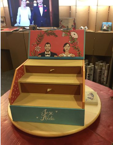 – Fandi: nos mostraron sus cajas personalizadas y me encantaron, una manera muy original de guardar las fotos de tu boda.