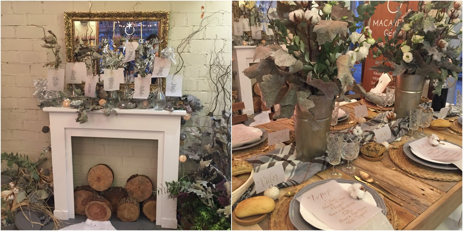 – Macarena Gea bodas y algo más. Preciosa su mesa de invierno con muebles de La Trastología, letras luminosas de Menudas Letras y caligrafía de De Pluma y Letras