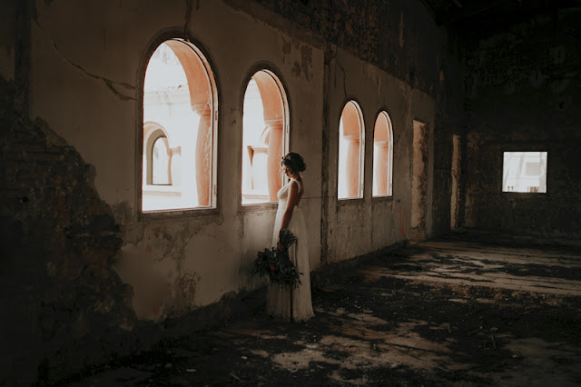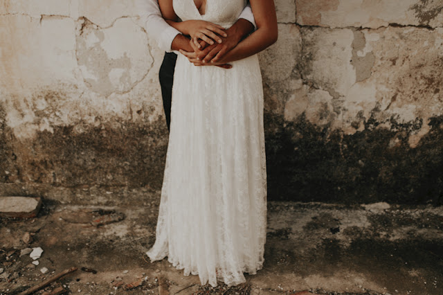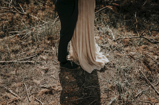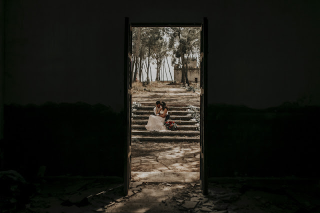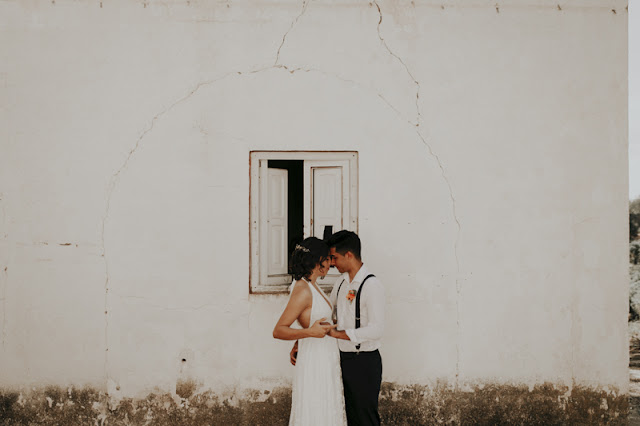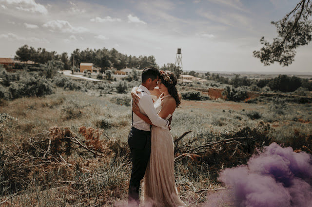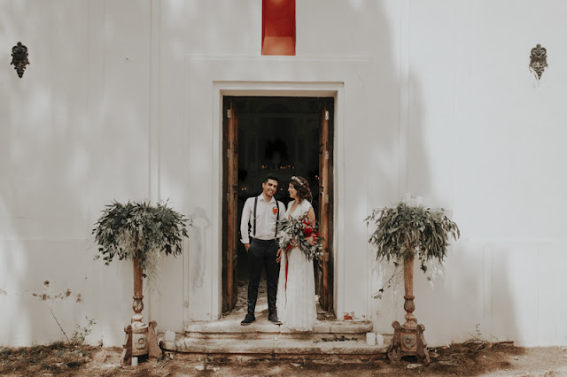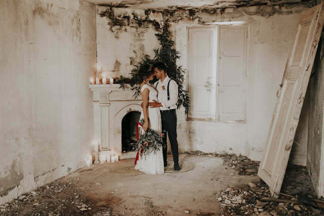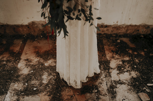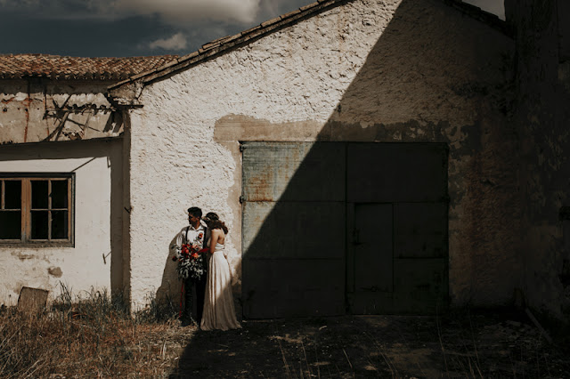 Esta es una sesión sencilla, sin aditivos pero con mucho mucho amor. Bohemia, donde los colores se mimetizan con el entorno, como si todo estuviera allí para ellos: verdes, blancos, naranjas y rojos. Rodeados de velas y pequeños toques de vegetación. No necesitan nada más, nada de grandes decorados, sus miradas, caricias y sonrisas cómplices lo invaden todo. Un pueblo olvidado donde unirse para siempre.
