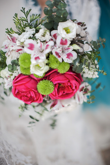 El vestido elegido fue un diseño de Virginia Vald. Una original pieza con el color azul como protagonista. Tanto la mirada de la modelo, el tejido del vestido como las flores “comunican