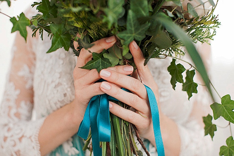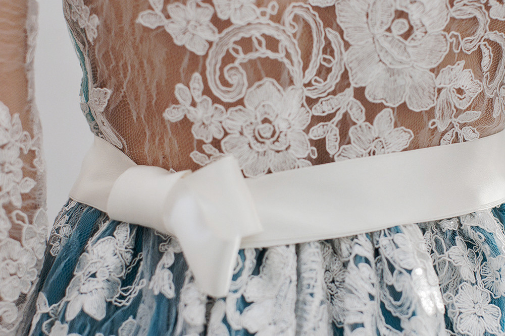El vestido elegido fue un diseño de Virginia Vald. Una original pieza con el color azul como protagonista. Tanto la mirada de la modelo, el tejido del vestido como las flores “comunican