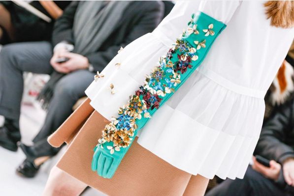 Y aquí dos maravillas de la alta costura, la propuesta de guantes de Del Pozo. Guantes largos con pedrería de colores que no me pueden gustar más.