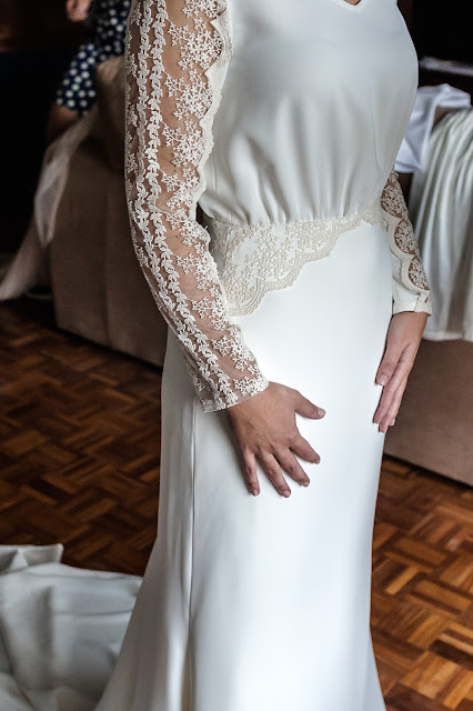 Cayetana vistió un diseño de Pol Nuñez que acompañó con un velo rosa empolvado junto con una preciosa corona de Anita Ribbon y zapatos de Maison Valentino Rockstud,. La peluquería y maquillaje estuvieron a cargo de Iker. La novia guardó una sorpresa para sus invitados, pues por la noche se cambió de vestido y lució un diseño de Asos Wedding.