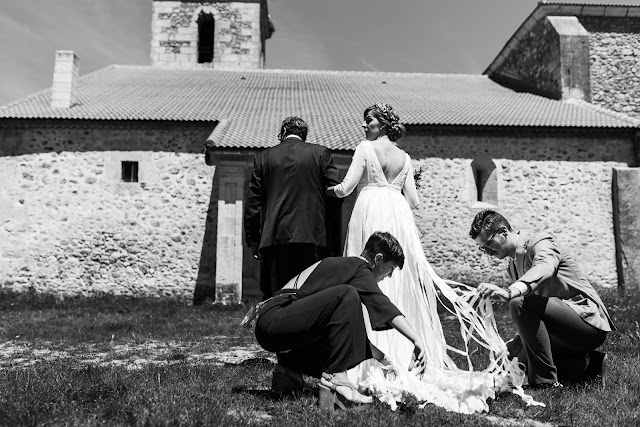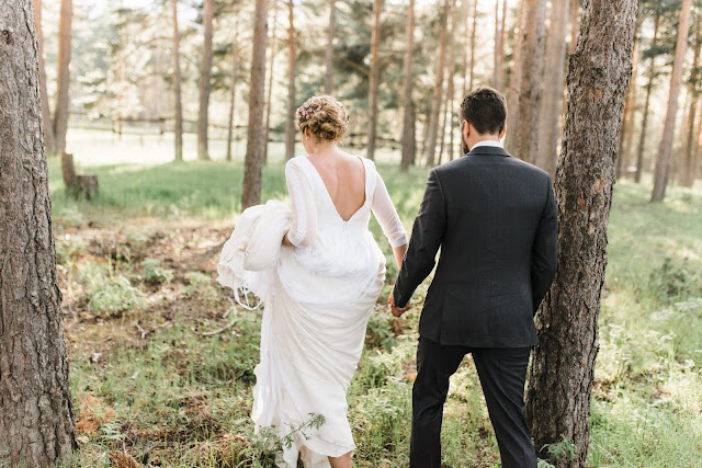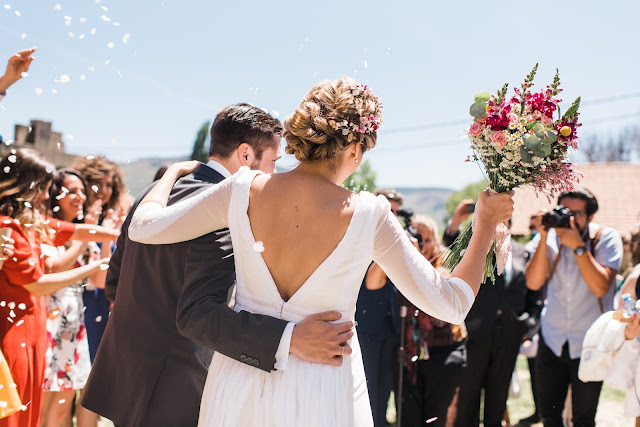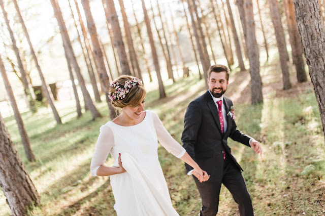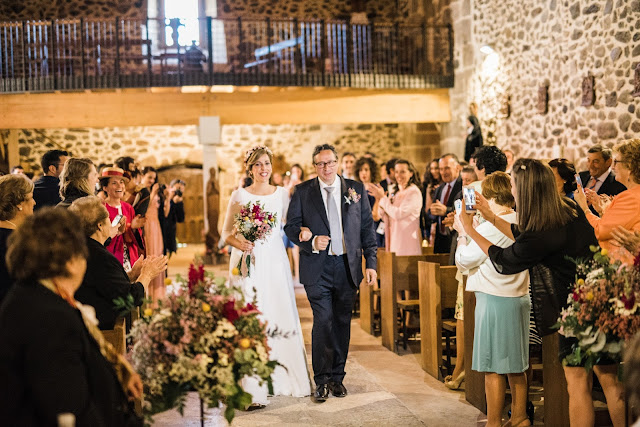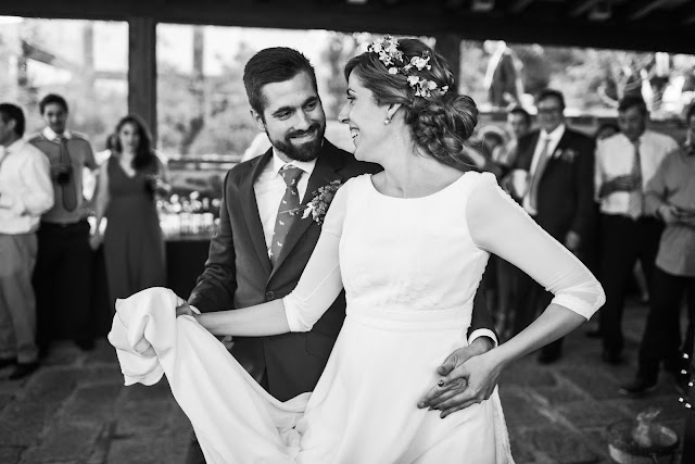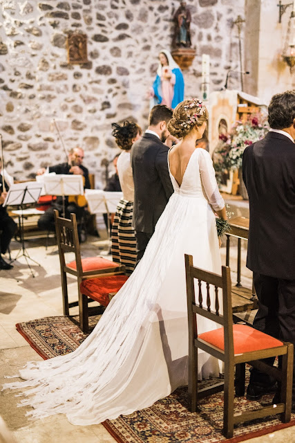 Celia y Ángel se casaron el 20 de mayo en el Valle Alto de Lozoya, al norte de Madrid, en concreto en la iglesia de Santa Marina de Alameda del Valle. La novia me cuenta que es una zona muy especial para ella pues tiene muy buenos recuerdos de los veranos de su infancia. Posteriormente la celebración continuó en la Finca Prados Riveros (Rascafría) con el catering Artigot.
