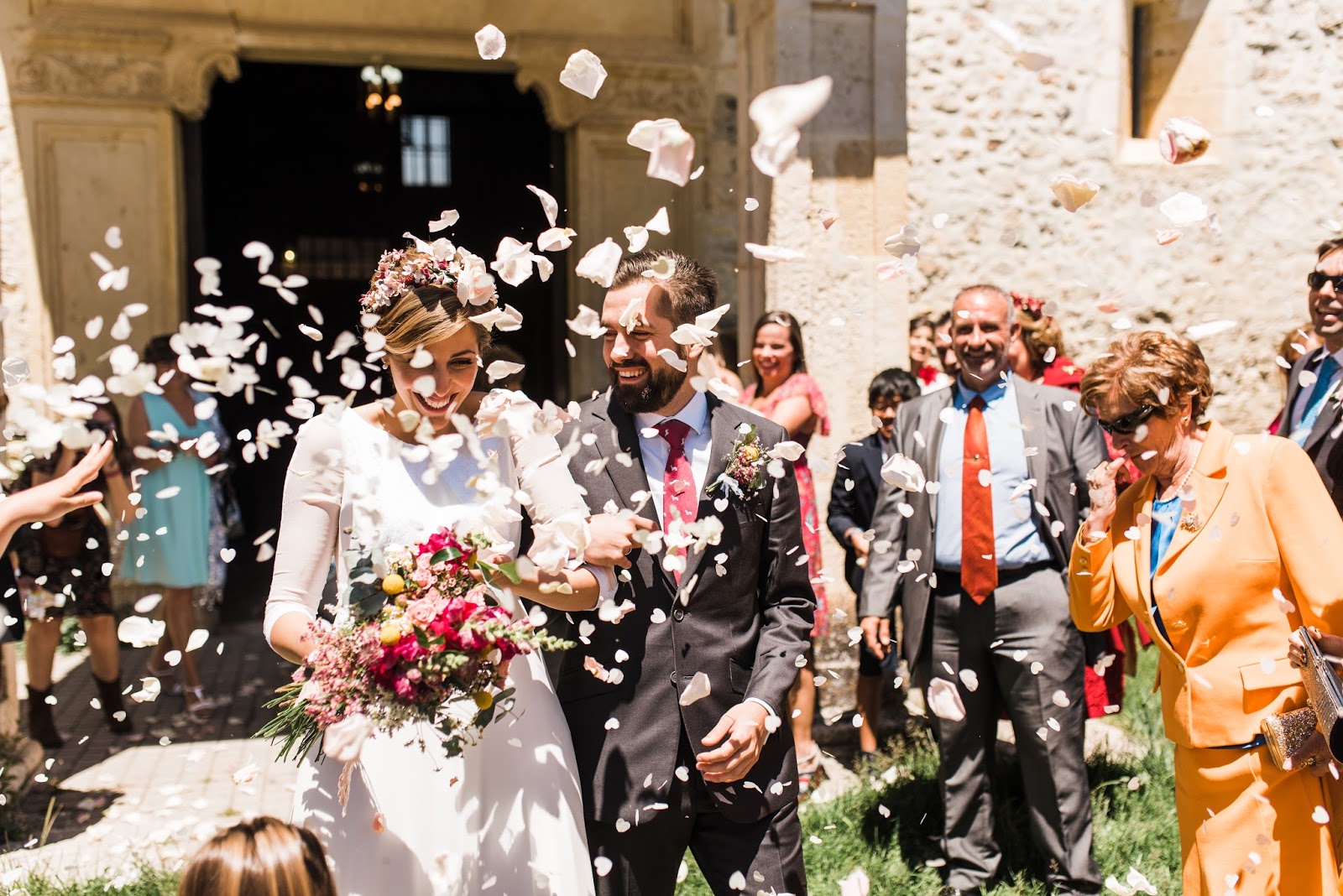 Celia y Ángel se casaron el 20 de mayo en el Valle Alto de Lozoya, al norte de Madrid, en concreto en la iglesia de Santa Marina de Alameda del Valle. La novia me cuenta que es una zona muy especial para ella pues tiene muy buenos recuerdos de los veranos de su infancia. Posteriormente la celebración continuó en la Finca Prados Riveros (Rascafría) con el catering Artigot.
