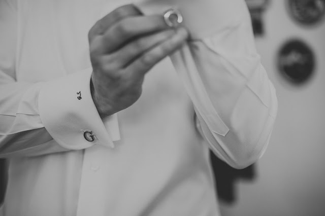 Guille vistió de Tom Black, una sastrería moderna sin olvidar la elegancia en la que se puede personalizar hasta el mínimo detalle: el color de los ojales de la chaqueta, el forro de la chaqueta y los bolsillos, los tirantes… Llevó unos gemelos con las iniciales C y G de Silvio Silvani.