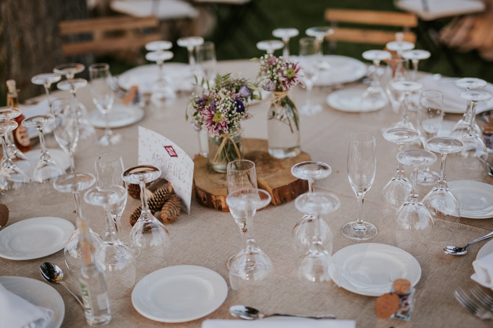 Celebraron una cena bajo las estrellas acompañada de guirnaldas de bombillas que daban un toque muy especial. Toda la papelería de la boda estuvo basada en esas guirnaldas de luces incidiendo en la idea de fiesta o verbena de verano. Las minutas fueron unos “comecocos”, un detalle muy original.