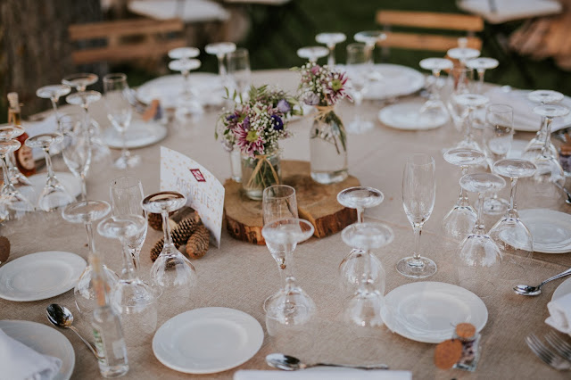 Tanto la ceremonia como la cena se celebraron en la Finca Prados Riveros, todo el equipo de la finca se encargó de la decoración del evento, destacando la paleta de colores que eligieron los novios: todo basado en los tonos blanco y malva, desde las flores, hasta el siting y los detalles de los invitados. En la finca pudieron pasar todo el fin de semana de la boda celebrando por todo lo alto la fiesta de su boda.