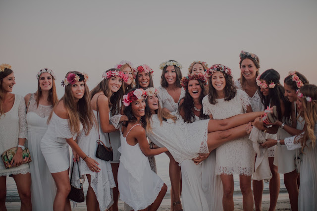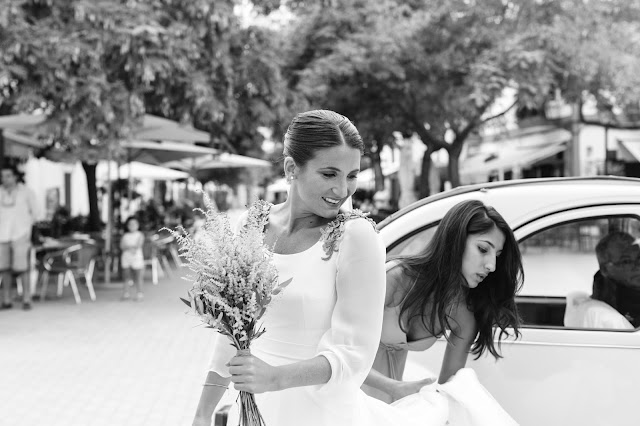 Sus invitados venían desde Valencia. La tarde noche previa a la boda celebraron una fiesta ibicenca en la playa hasta altas horas de la madrugada. La fotógrafa Adela Baraja se encargó de inmortalizar el momento.