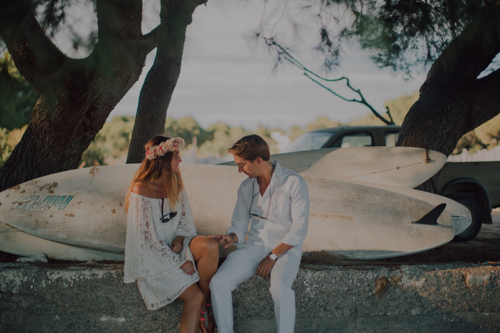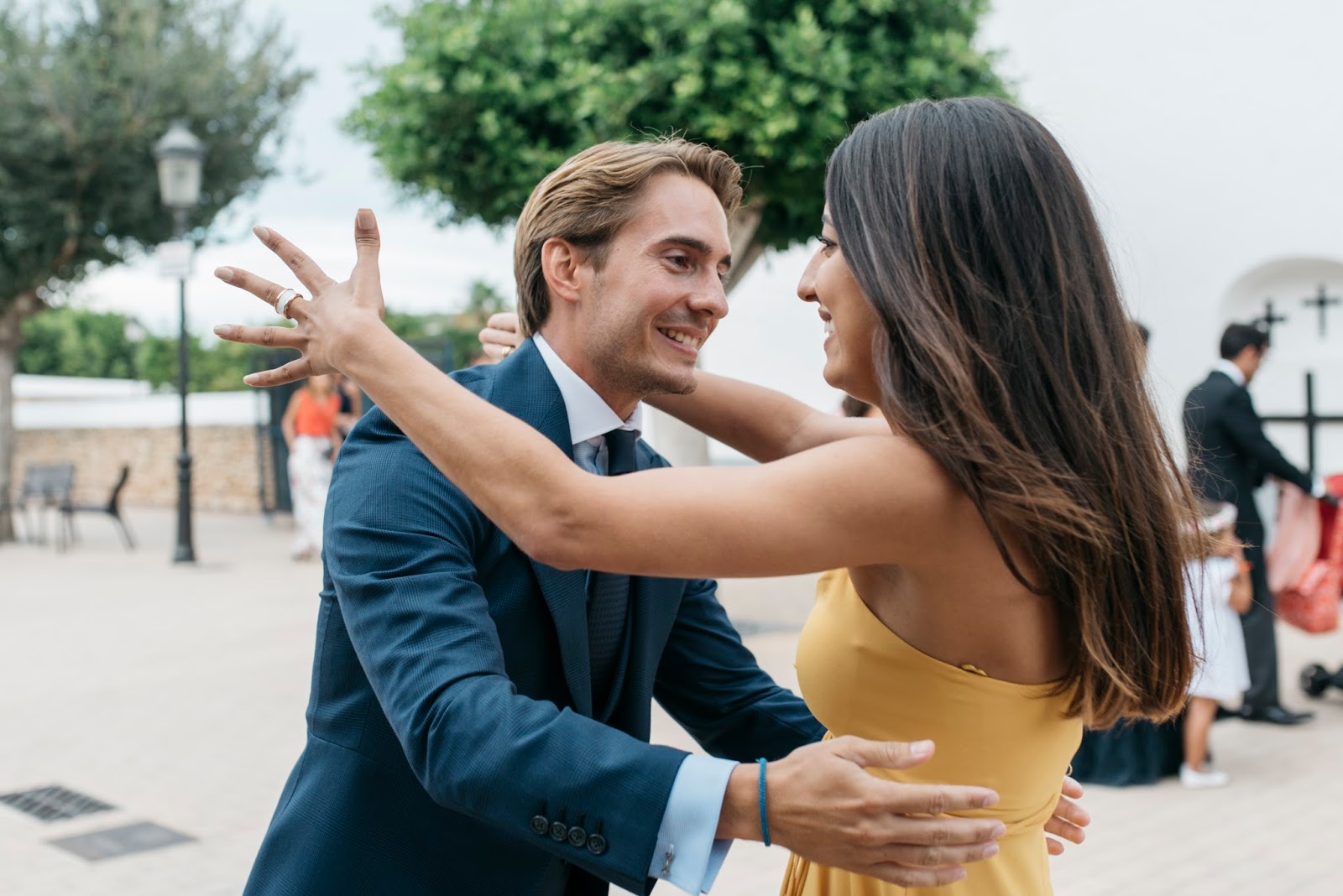 Sus invitados venían desde Valencia. La tarde noche previa a la boda celebraron una fiesta ibicenca en la playa hasta altas horas de la madrugada. La fotógrafa Adela Baraja se encargó de inmortalizar el momento.