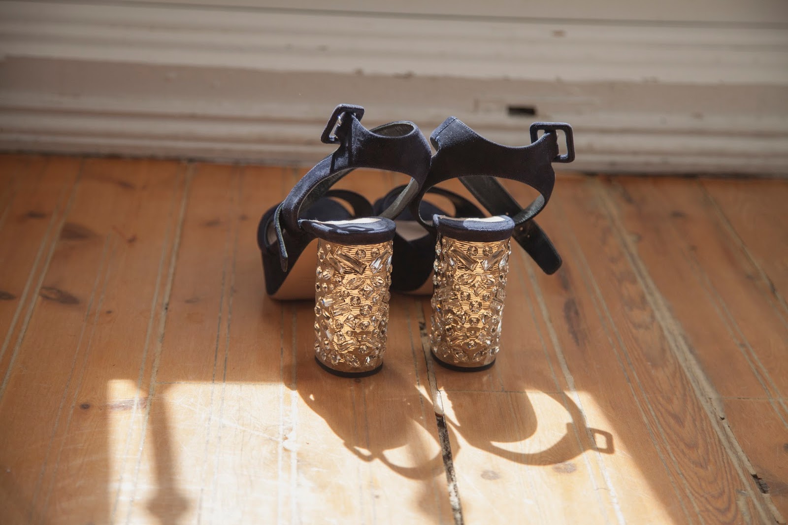 A juego con el vestido llevó un precioso tocado de Suma Cruz, toda una obra de arte, y unos zapatos de terciopelo azul de Miu Miu.