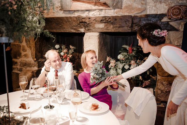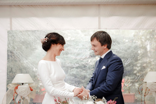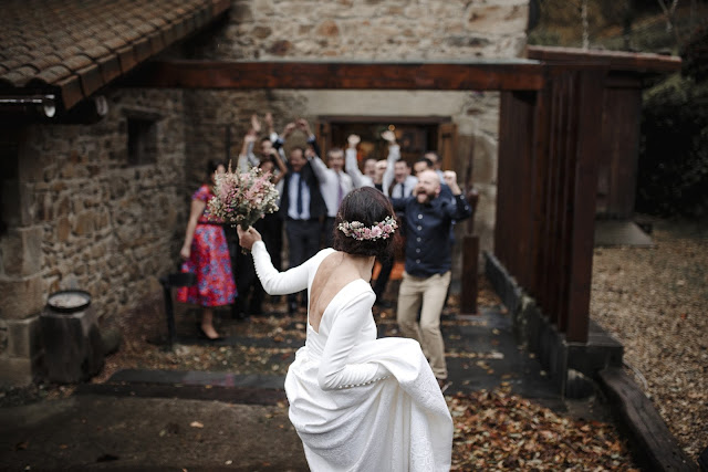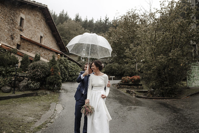 El día de la boda llovió mucho, pero no fue ningún impedimento, incluso la lluvia le daba un toque más otoñal al entorno. Se casaron con una ceremonia civil muy emotiva, llena de palabras bonitas, risas y lágrimas de emoción. Irantzu entró a la ceremonia del brazo de su hermano con la canción “All of me” de John Legend y el resto del acto estuvo amenizado por un cuarteto de cuerda. Tras el “sí quiero” les bailaron el tradicional “aurresku”. Posteriormente iniciaron el cocktail, que estuvo amenizado con una “trikitixa”, también típico de la zona.