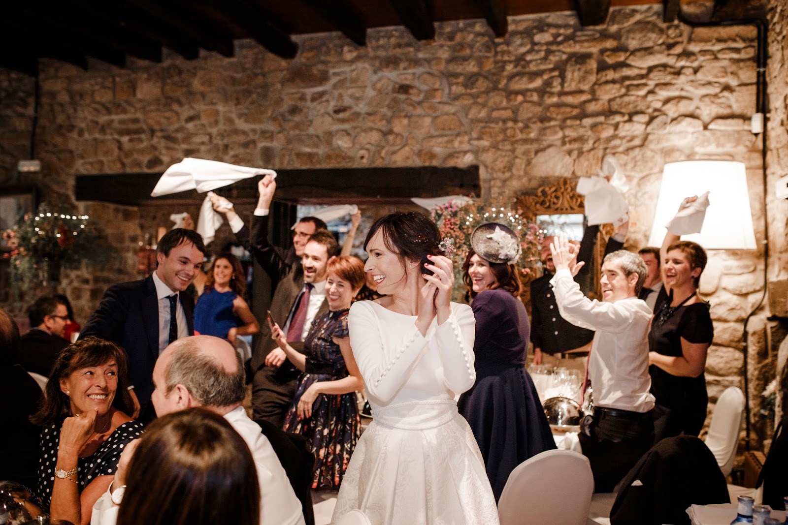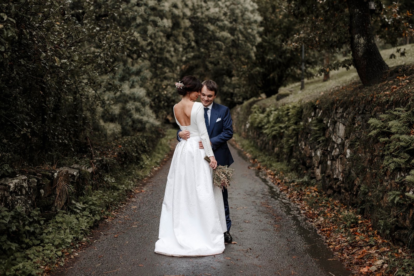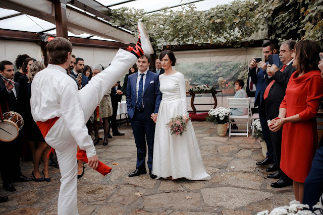 El día de la boda llovió mucho, pero no fue ningún impedimento, incluso la lluvia le daba un toque más otoñal al entorno. Se casaron con una ceremonia civil muy emotiva, llena de palabras bonitas, risas y lágrimas de emoción. Irantzu entró a la ceremonia del brazo de su hermano con la canción “All of me” de John Legend y el resto del acto estuvo amenizado por un cuarteto de cuerda. Tras el “sí quiero” les bailaron el tradicional “aurresku”. Posteriormente iniciaron el cocktail, que estuvo amenizado con una “trikitixa”, también típico de la zona.