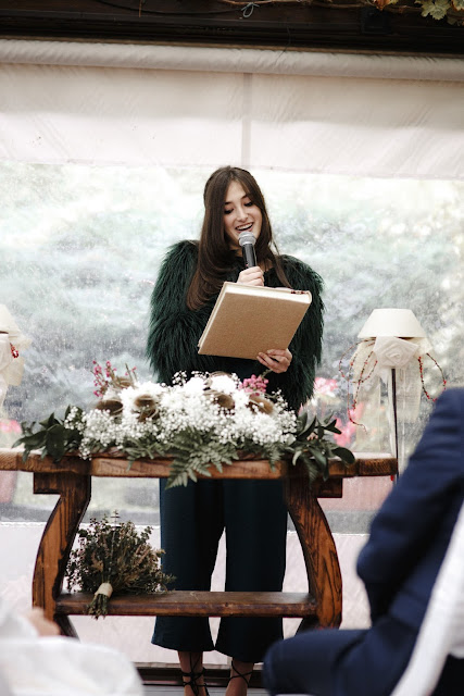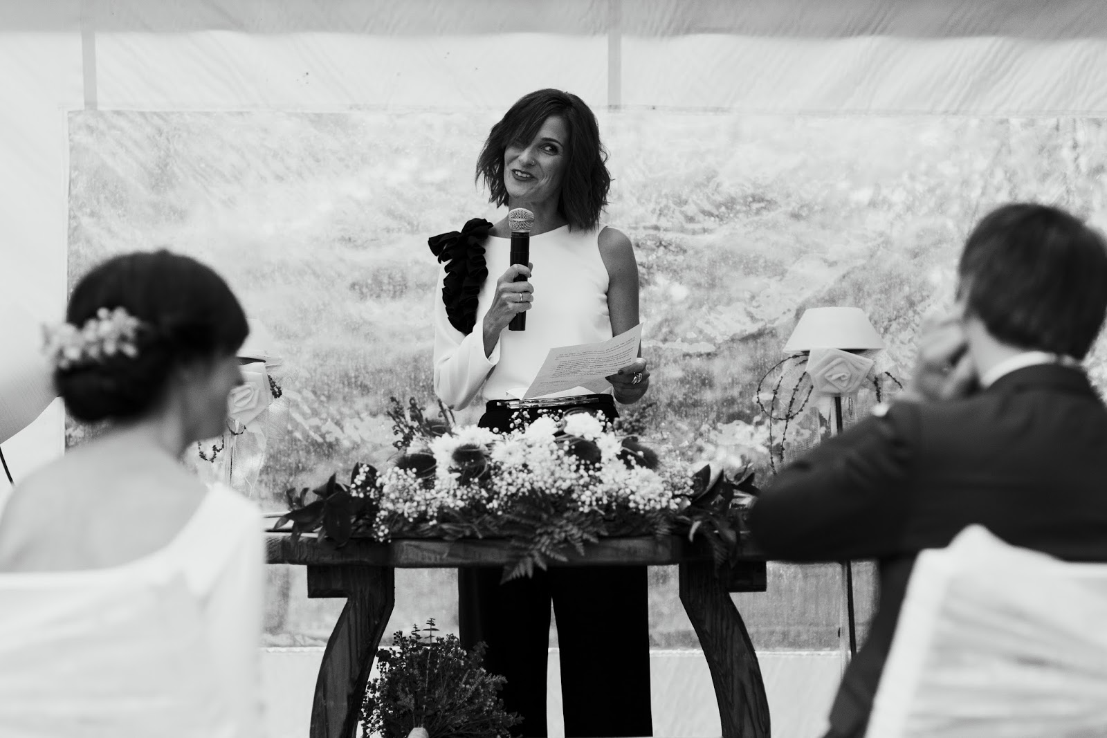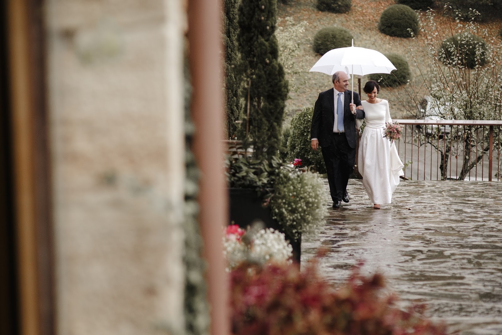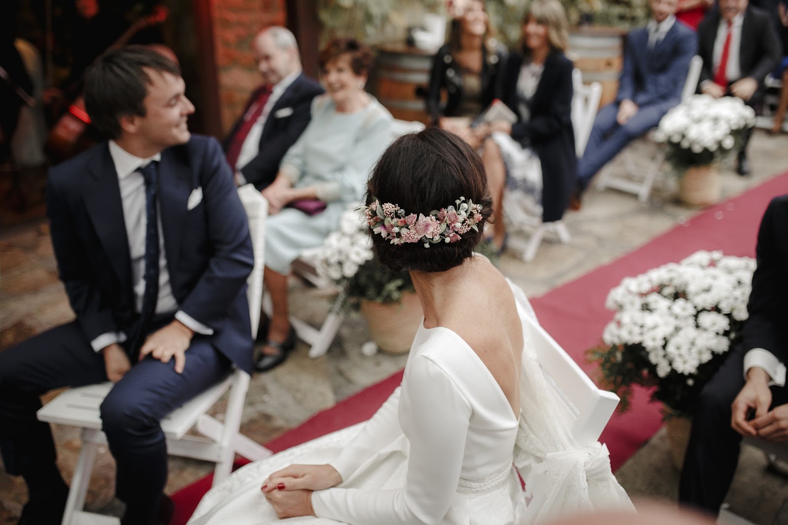 El día de la boda llovió mucho, pero no fue ningún impedimento, incluso la lluvia le daba un toque más otoñal al entorno. Se casaron con una ceremonia civil muy emotiva, llena de palabras bonitas, risas y lágrimas de emoción. Irantzu entró a la ceremonia del brazo de su hermano con la canción “All of me” de John Legend y el resto del acto estuvo amenizado por un cuarteto de cuerda. Tras el “sí quiero” les bailaron el tradicional “aurresku”. Posteriormente iniciaron el cocktail, que estuvo amenizado con una “trikitixa”, también típico de la zona.