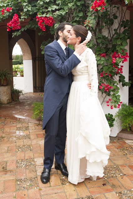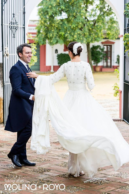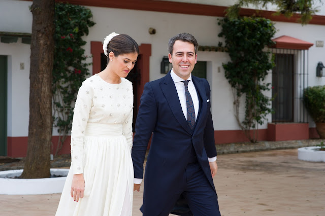 Marta y Javier se casaron el 26 de noviembre de 2016 en Sevilla. Para la ocasión Marta eligió un precioso vestido de The 2nd Skin de manga larga donde destacaba el espectacular cuerpo con detalles en pedrería. Lo acompaño de un tocado de Tocados Solideo y unos zapatos de Aquazurra.