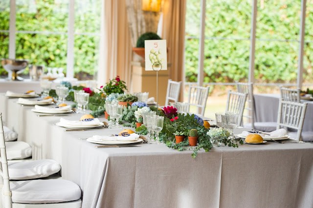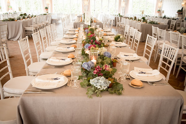 El banquete se celebró en la Hacienda de Orán con el catering Delfin Delicatessen. De la espectacular decoración floral se encargó Mirka Eventos, un acierto total. Durante el cocktail contrataron un grupo de bossanova llamado Nuria Da Silva.