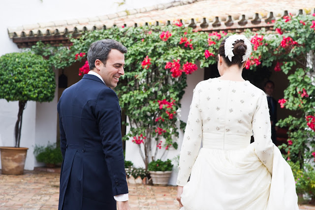 La ceremonia tuvo lugar en la Capilla de los Estudiantes en Sevilla. De la decoración floral y el ramo de marta se encargó D-Tallo Flores.
