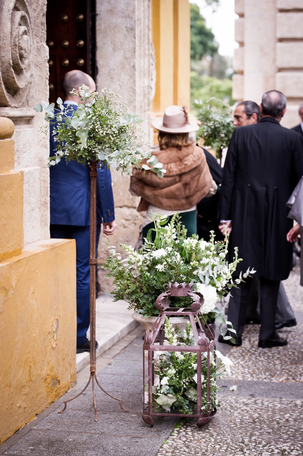 La ceremonia tuvo lugar en la Capilla de los Estudiantes en Sevilla. De la decoración floral y el ramo de marta se encargó D-Tallo Flores.