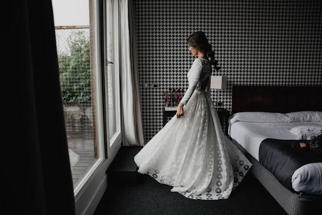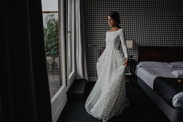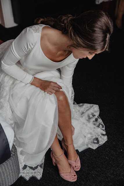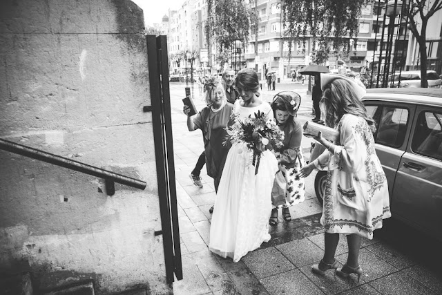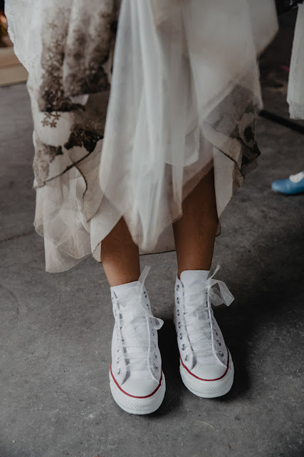 Pati llevó un impresionante vestido de Paredero Quirós, sin duda una de mis firmas nupciales favoritas. Su espalda descubierta y su falda son una auténtica joya. Completó el look con zapatos de Franjul que después en la fiesta cambió por unas zapatillas Converse blancas. Quería darlo todo y esa era la mejor manera, comodidad y personalidad ante todo!