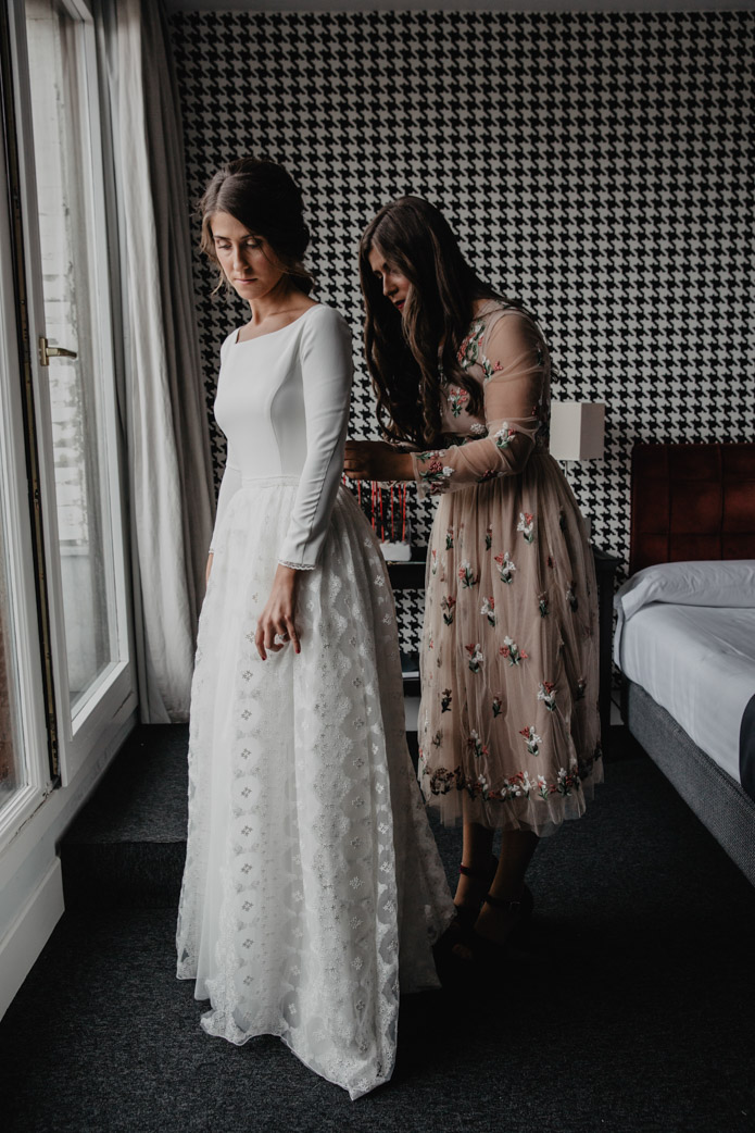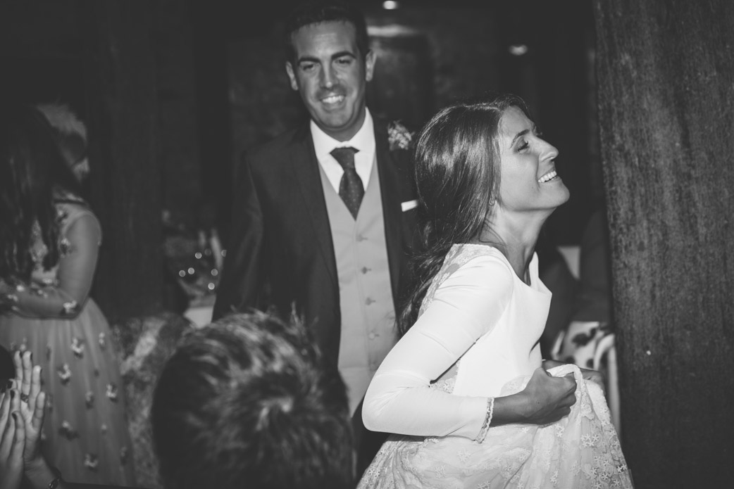Pati llevó un impresionante vestido de Paredero Quirós, sin duda una de mis firmas nupciales favoritas. Su espalda descubierta y su falda son una auténtica joya. Completó el look con zapatos de Franjul que después en la fiesta cambió por unas zapatillas Converse blancas. Quería darlo todo y esa era la mejor manera, comodidad y personalidad ante todo!