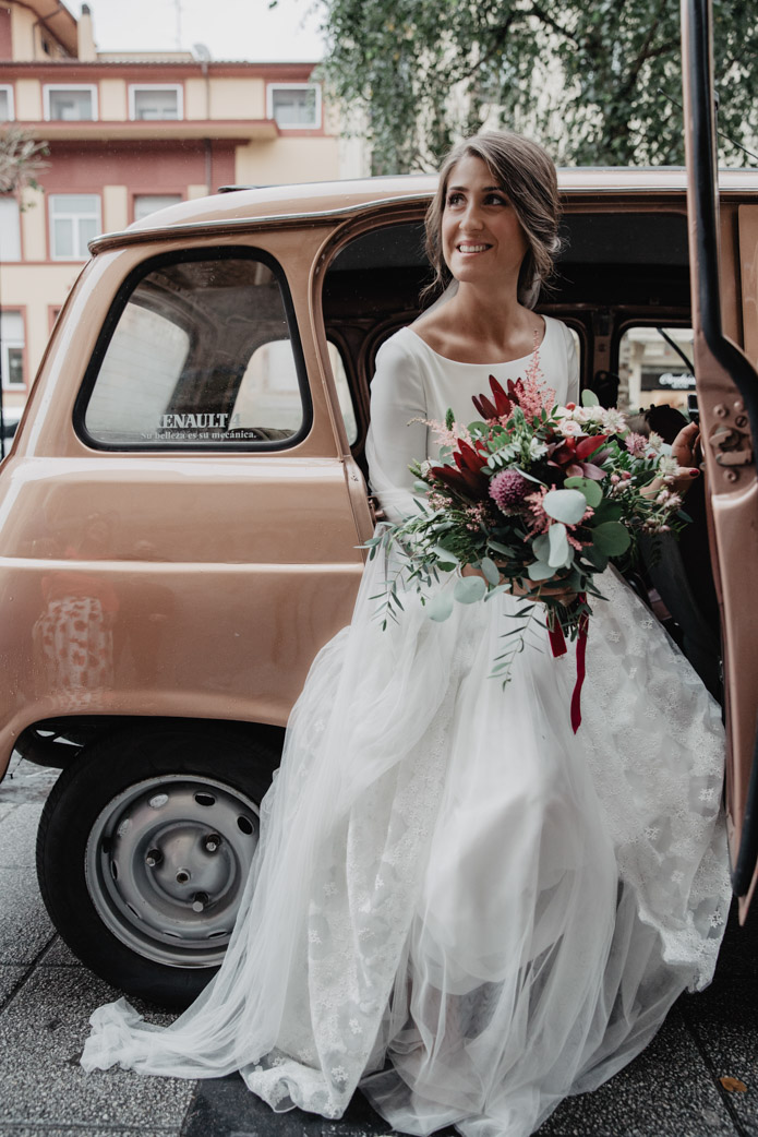 Para el transporte de los novios utilizaron un coche antiguo que alquilaron en Cuatroele. Uno de los momentos más especiales fue cuando Pati entro a la finca con una vespa antigua que perteneció a su abuelo y que le recordaba a sus veranos de la infancia.