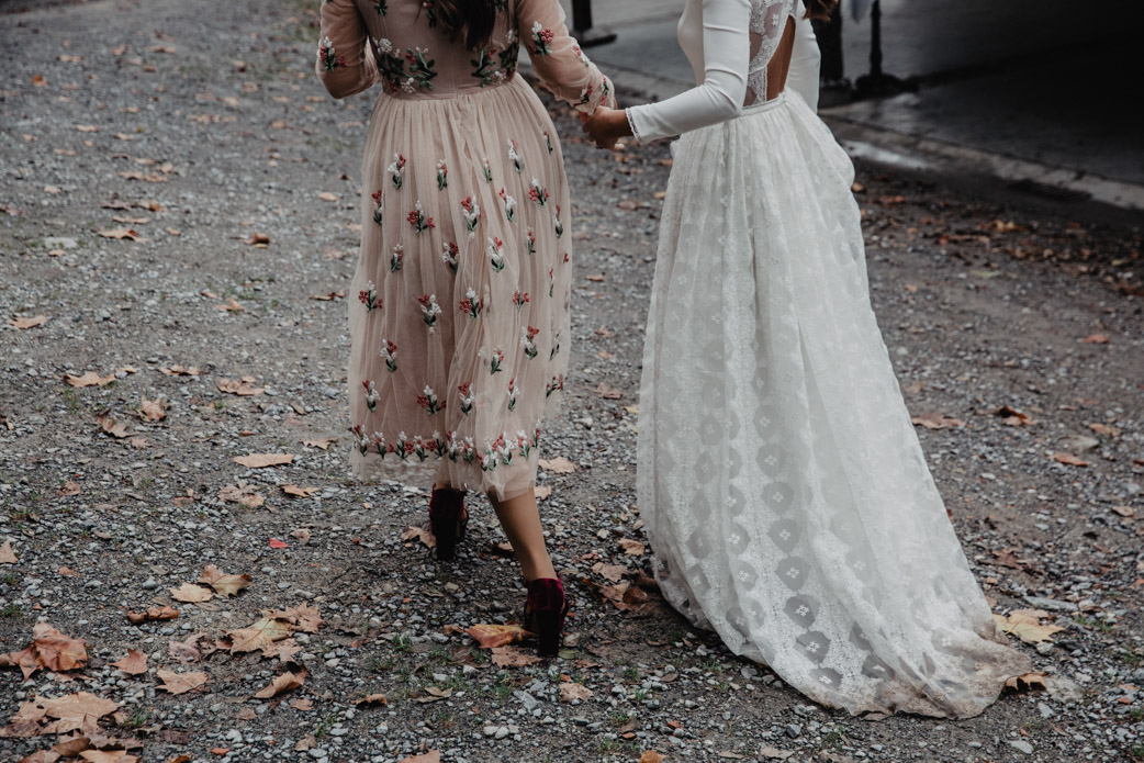 Pati llevó un impresionante vestido de Paredero Quirós, sin duda una de mis firmas nupciales favoritas. Su espalda descubierta y su falda son una auténtica joya. Completó el look con zapatos de Franjul que después en la fiesta cambió por unas zapatillas Converse blancas. Quería darlo todo y esa era la mejor manera, comodidad y personalidad ante todo!
