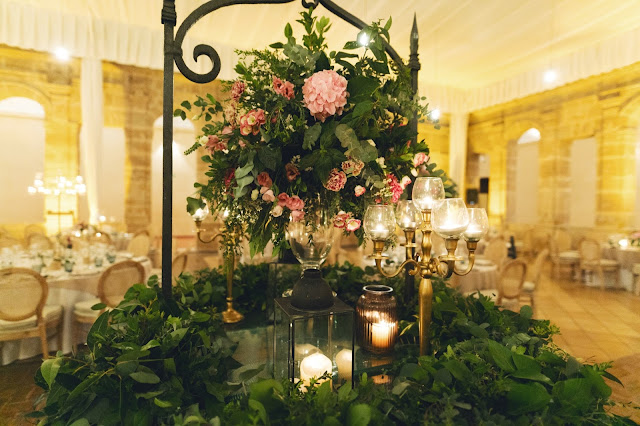 La decoracion floral y el ramo de novia fueron obra de El taller de Clo. Los protagonistas de la decoración fueron los tonos pasteles y las velas.