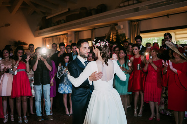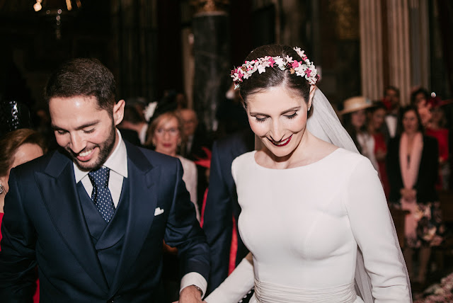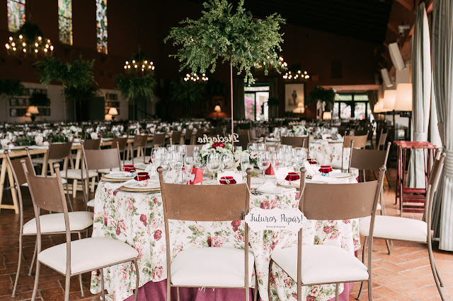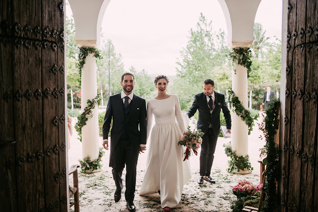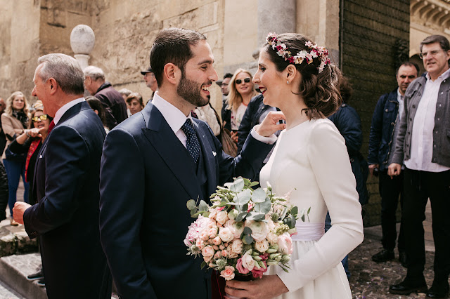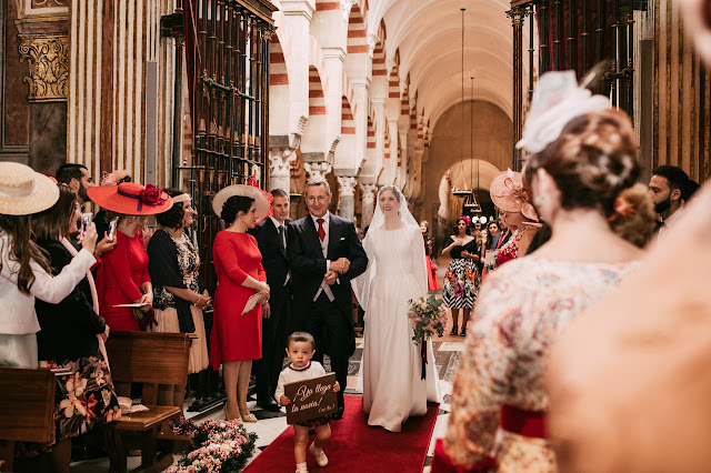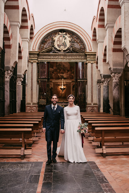 La ceremonia se celebró en un lugar de ensueño: la Capilla del Sagrario de la Mezquita de Córdoba. Posteriormente se trasladaron a Torre de la Barca donde tuvo lugar el banquete. La boda estuvo organizada por Atelier de la Flor quienes también se encargaron de una espectacular decoración floral de inspiración romántica y campestre y del ramo de Sandra. Tuvieron varios rincones especiales: candy bar, photocall, cigar corner… destacar la preciosa seminaked cake de red velvet a cargo de Sugar`s Nook.