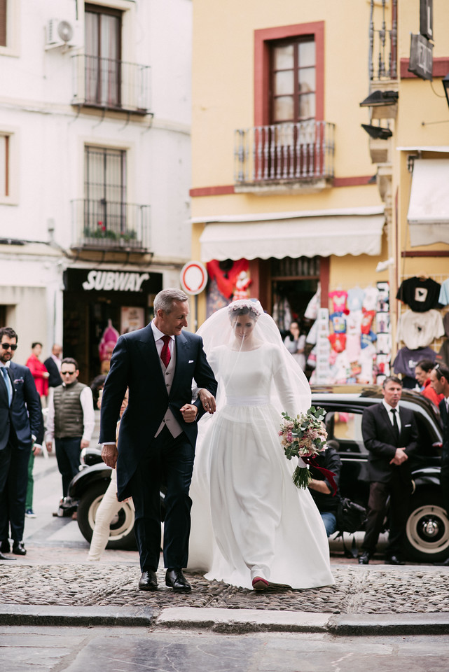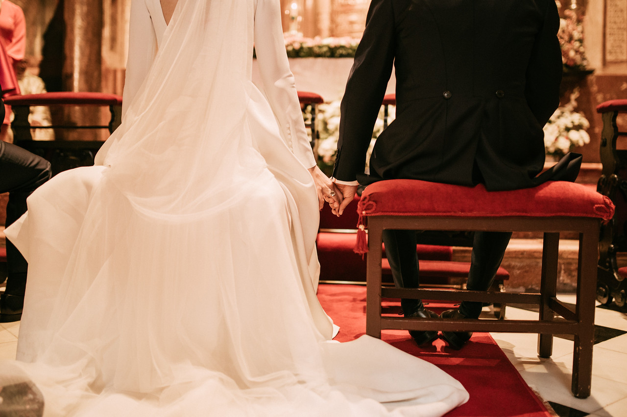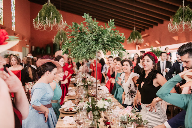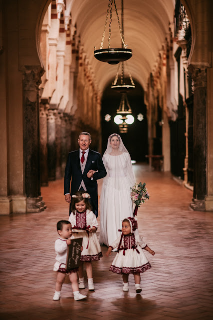 La ceremonia se celebró en un lugar de ensueño: la Capilla del Sagrario de la Mezquita de Córdoba. Posteriormente se trasladaron a Torre de la Barca donde tuvo lugar el banquete. La boda estuvo organizada por Atelier de la Flor quienes también se encargaron de una espectacular decoración floral de inspiración romántica y campestre y del ramo de Sandra. Tuvieron varios rincones especiales: candy bar, photocall, cigar corner… destacar la preciosa seminaked cake de red velvet a cargo de Sugar`s Nook.