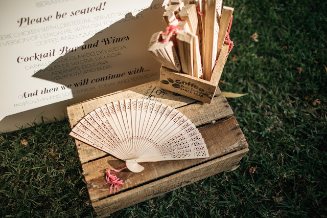 La boda estuvo organizada por Pasión Eventos. Crearon una boda de inspiración mediterránea. Para la decoración se utilizaron materiales como la arpillera, la