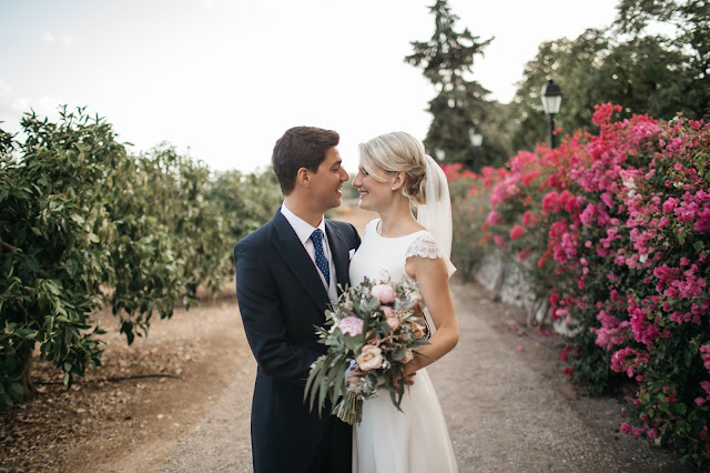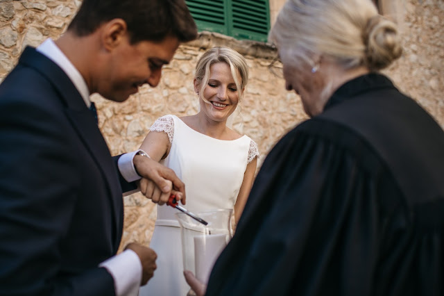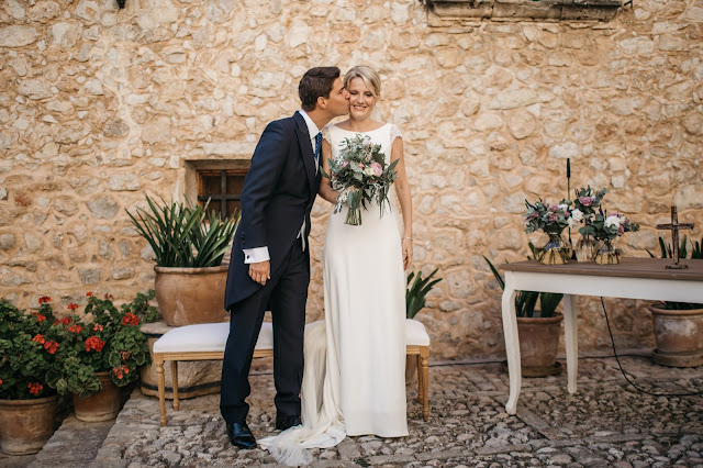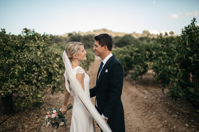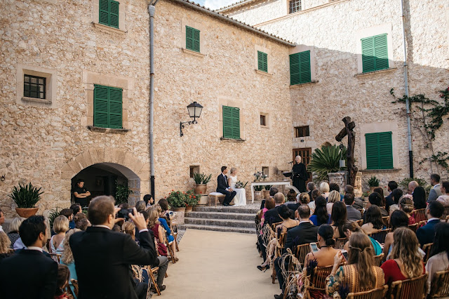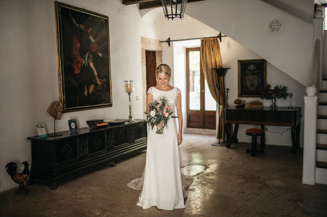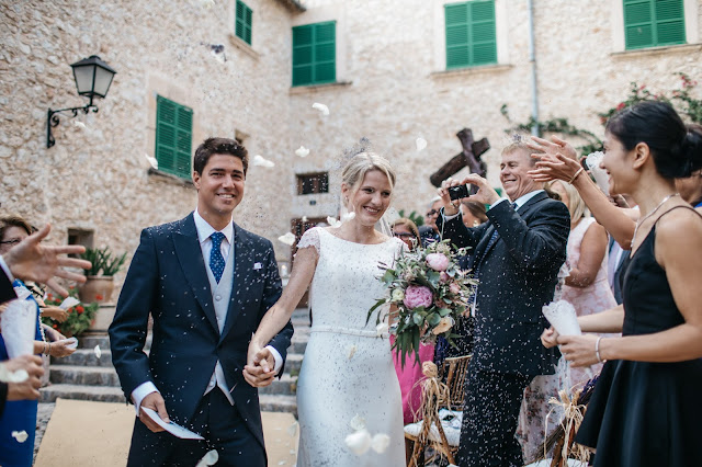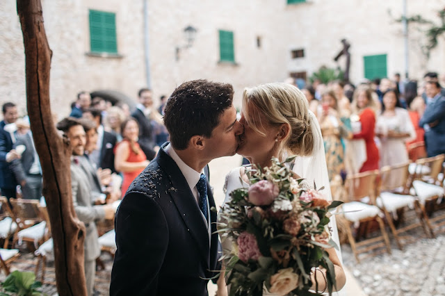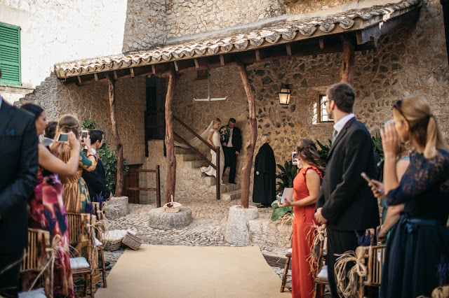 ambos y combinar tradiciones para que todos los invitados se sintieran como en casa. El resultado fue una boda sofisticada y sencilla de estilo rústico, mediterráneo y elegante celebrada en una maravillosa finca con vistas a la Tramuntana.