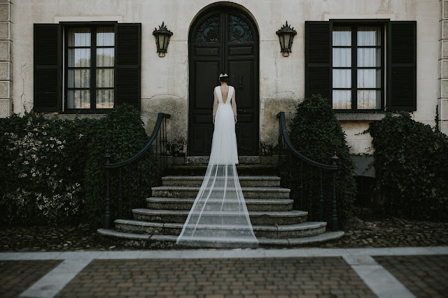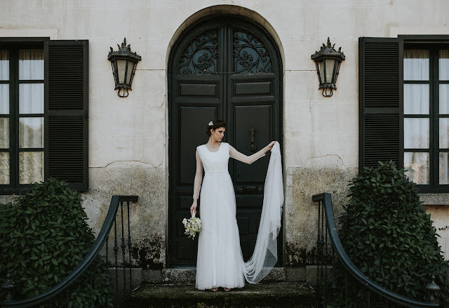 El Palacio de Negralejo y sus jardines reciben a la novia protagonista de este editorial organizado por Peonias Eventos y fotografiada con acierto por Prisma Blanco. Una novia inquietante, mística, salida de un bosque encantado.