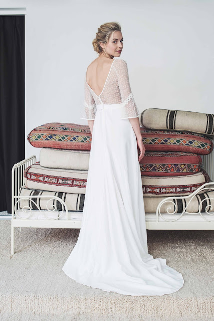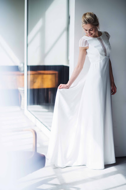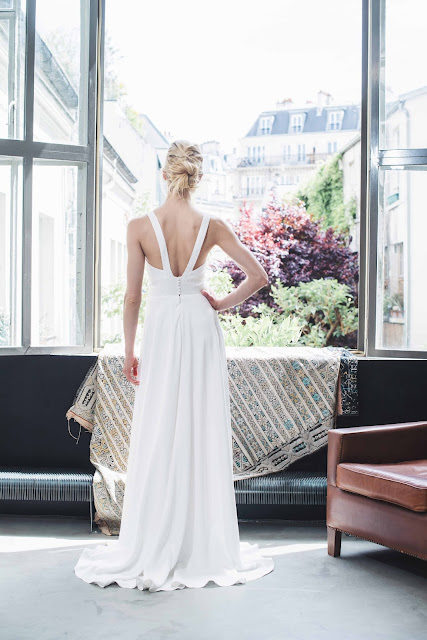 Soy una enamorada de París. Cuando descubrí la firma francesa Mademoiselle de Guise no dudé en empezar a seguirla, pues me transmitia ese aire parisienne que tanto me gusta, ver el diseño y el movimiento de sus vestidos me transporta a las idílicas calles de Le Marais o a un paseo por los jardines de Tullerías. Fue una alegría inmensa cuando la firma me envió su nueva colección para presentarla en España. Mademoiselle de Guise, con Chloé Jaquen a la cabeza, crea colecciones fluidas donde el crepe de seda y el tul se mezclan con elegantes encajes para dar lugar a novias urbanas, románticas y sobre todo muy chic.