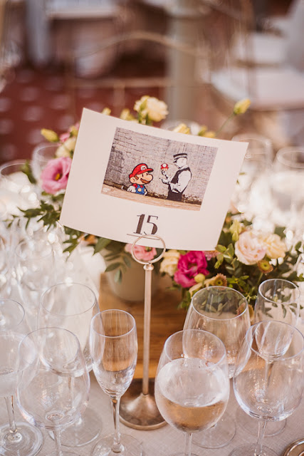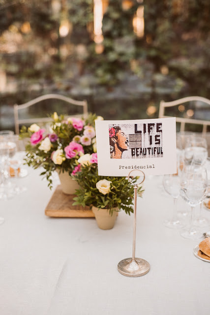 El banquete tuvo lugar en la Finca las Jarillas a cargo del cattering Cocoha. De la decoración floral se encargó Inés Urquijo. Los meseros los basaron en el artista urbano inglés Banksy.