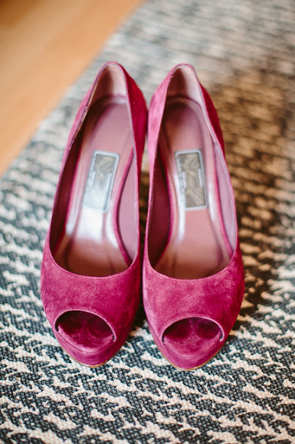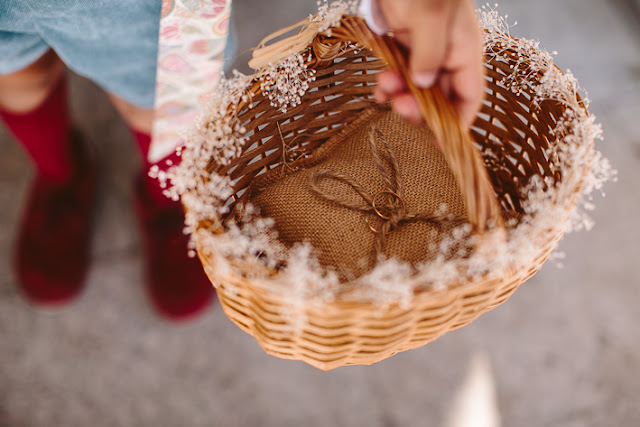 Patricia llevó un ramo de rosas, eucalipto, paniculata y brezo de la floristería Tiscar. Lo envolvió en un pañuelo centenario junto con una cinta de terciopelo color frambuesa a conjunto con sus zapatos y sus pendientes.