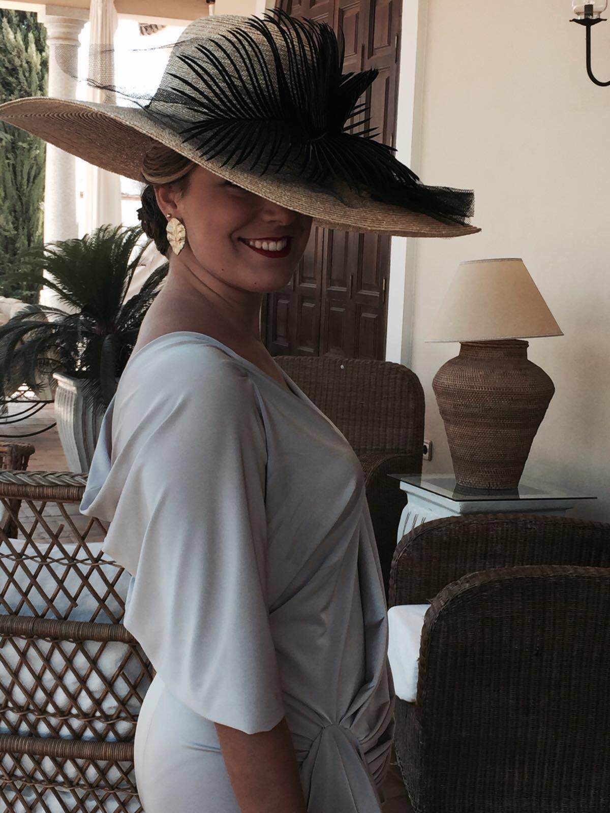 Confecciona vestidos de novias y invitadas centrándose sobre todo en la caída y movimiento de cada tejido. También se atreve con el diseño de pamelas y tocados.