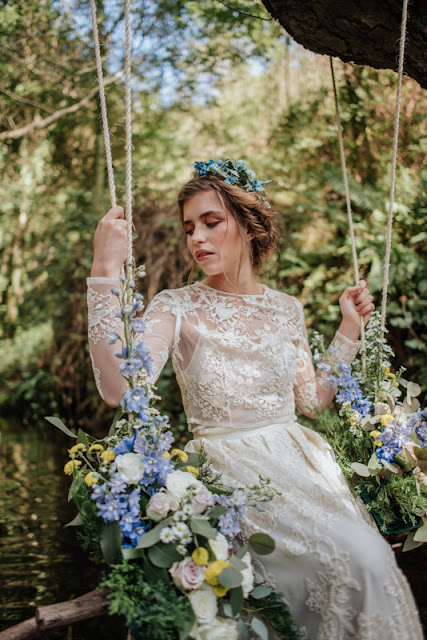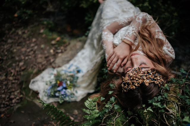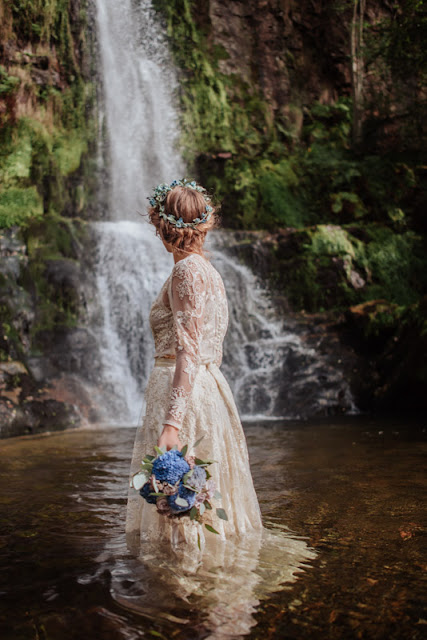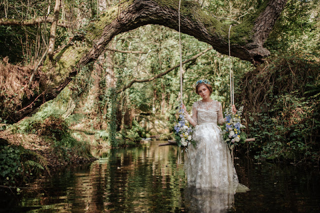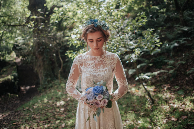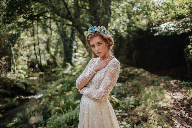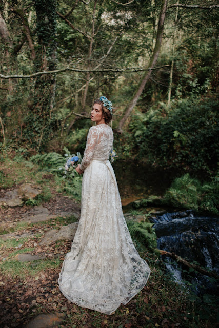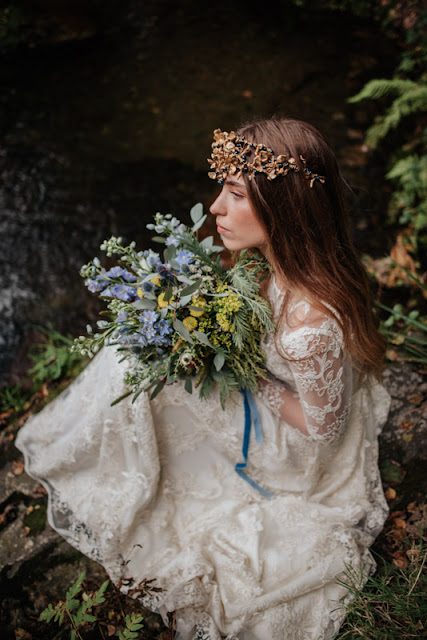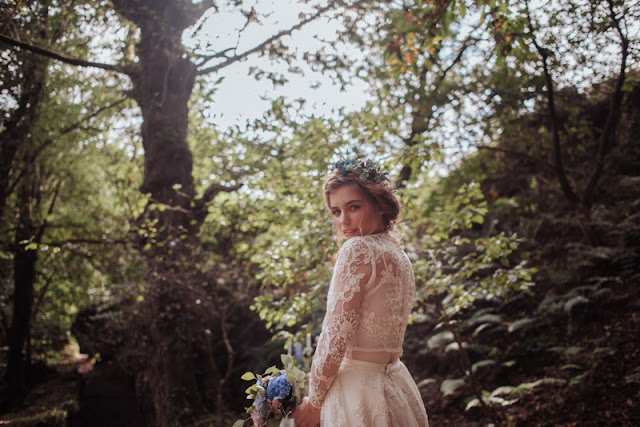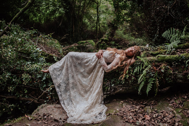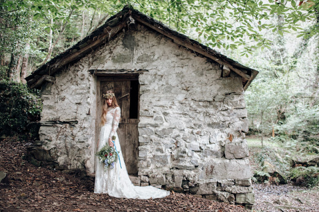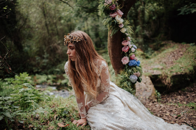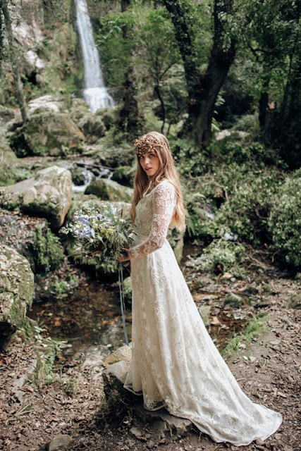Hoy os traigo este precioso editorial organizado por Confeti de Boda. Se trata de una novia “xana”: una novia de cabellos largos dorados, que habita en cascadas y ríos, una novia independiente, con un amor incondicional por la naturaleza, alguien a quien se le eriza la piel al escuchar el susurro del agua, una mujer de una extremada belleza natural que posee el corazón de quien la descubre.