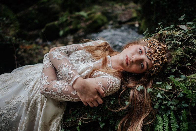 Hoy os traigo este precioso editorial organizado por Confeti de Boda. Se trata de una novia “xana”: una novia de cabellos largos dorados, que habita en cascadas y ríos, una novia independiente, con un amor incondicional por la naturaleza, alguien a quien se le eriza la piel al escuchar el susurro del agua, una mujer de una extremada belleza natural que posee el corazón de quien la descubre.
