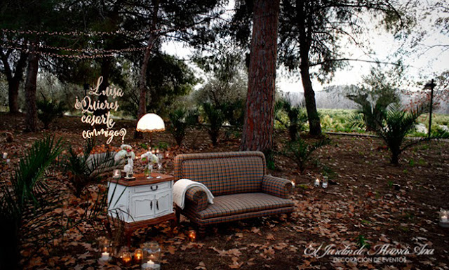 Tuvo engañada a Luisa todo el día y al caer la noche le dio la mayor sorpresa de su vida: la llevó en medio de una pinada escondida en La Vallesa de Mandor (Valencia) donde había preparado un escenario de película, recreando un bosque encantado. Al final de un camino de velas se veía, bajo guirnaldas de luces, un sofá y una mesilla con fotos de ambos y detrás unas letras luminosas donde se leía: Luisa, ¿Quieres casarte conmigo?