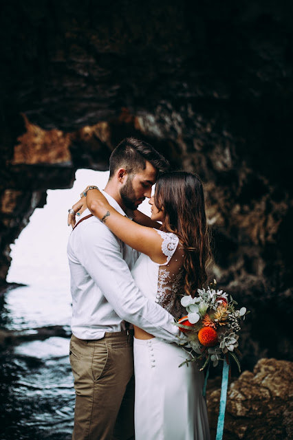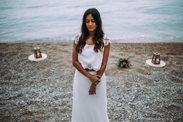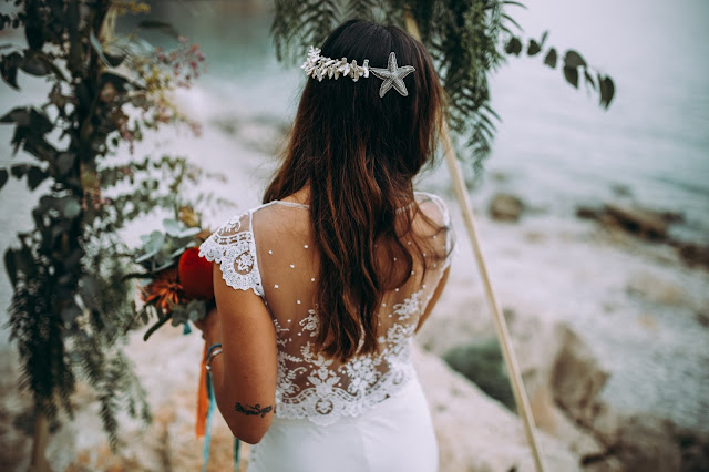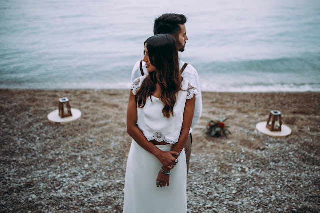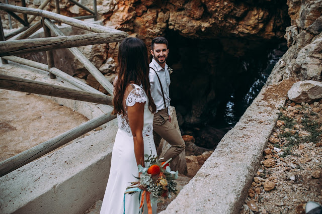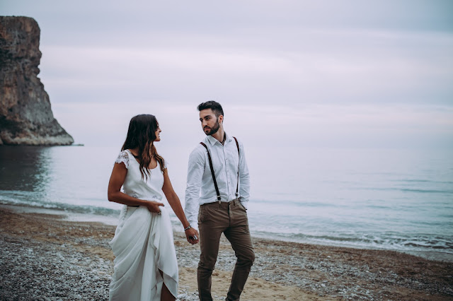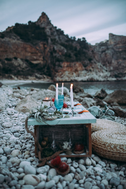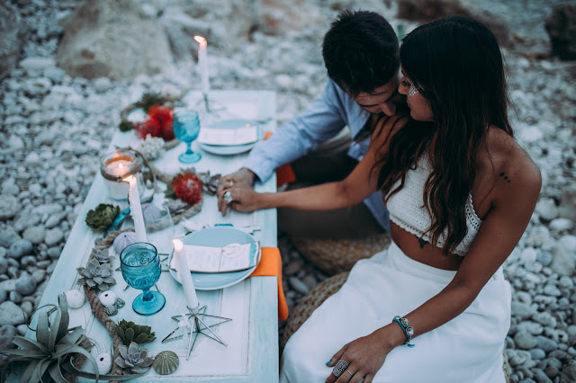 El editorial Waves in love es de los más bonitos que he visto nunca. El entorno sin duda es uno de mis sitios preferidos. Me encanta la Costa Blanca pero en especial Benitatxell es un lugar mágico. Un editorial de inspiración mediterránea donde los novios se fusionan a la perfección con el escenario. La novia lleva un increíble vestido dos piezas con un cuerpo con espalda de encaje y plumeti que al caer la noche cambia por un top de punto. Es en ese momento en el que la pareja se sienta a disfrutar de una romántica cena a la luz de la luna. Un editorial romántico y muy especial que seguro os va a encantar.