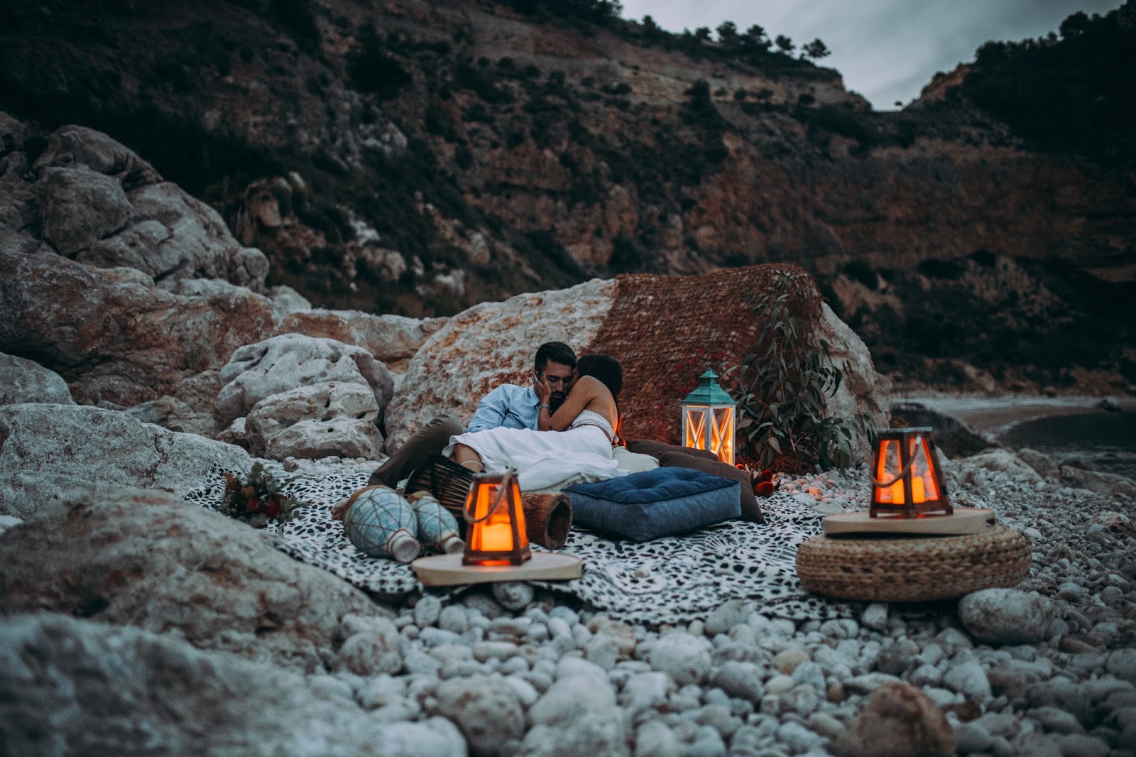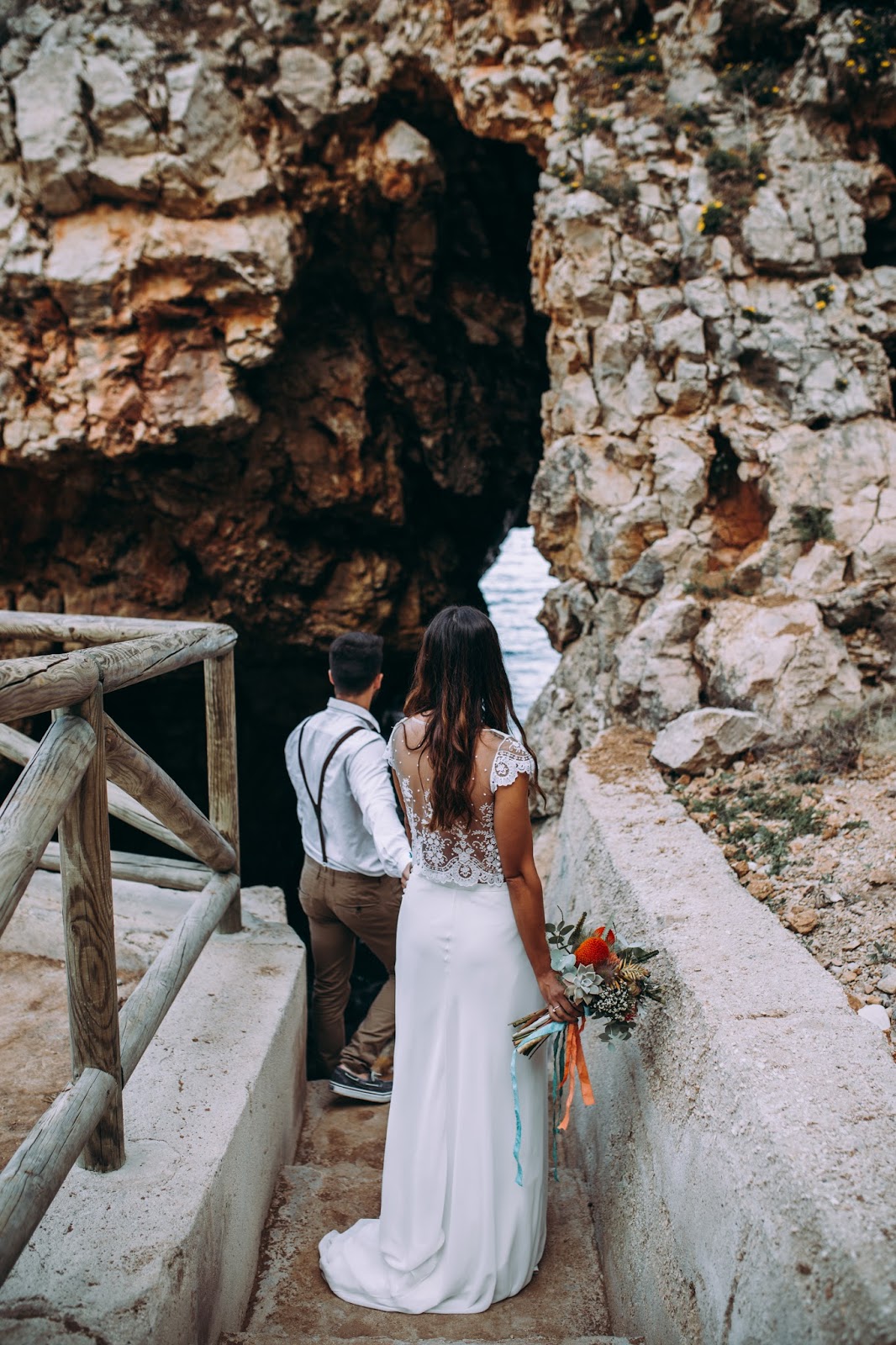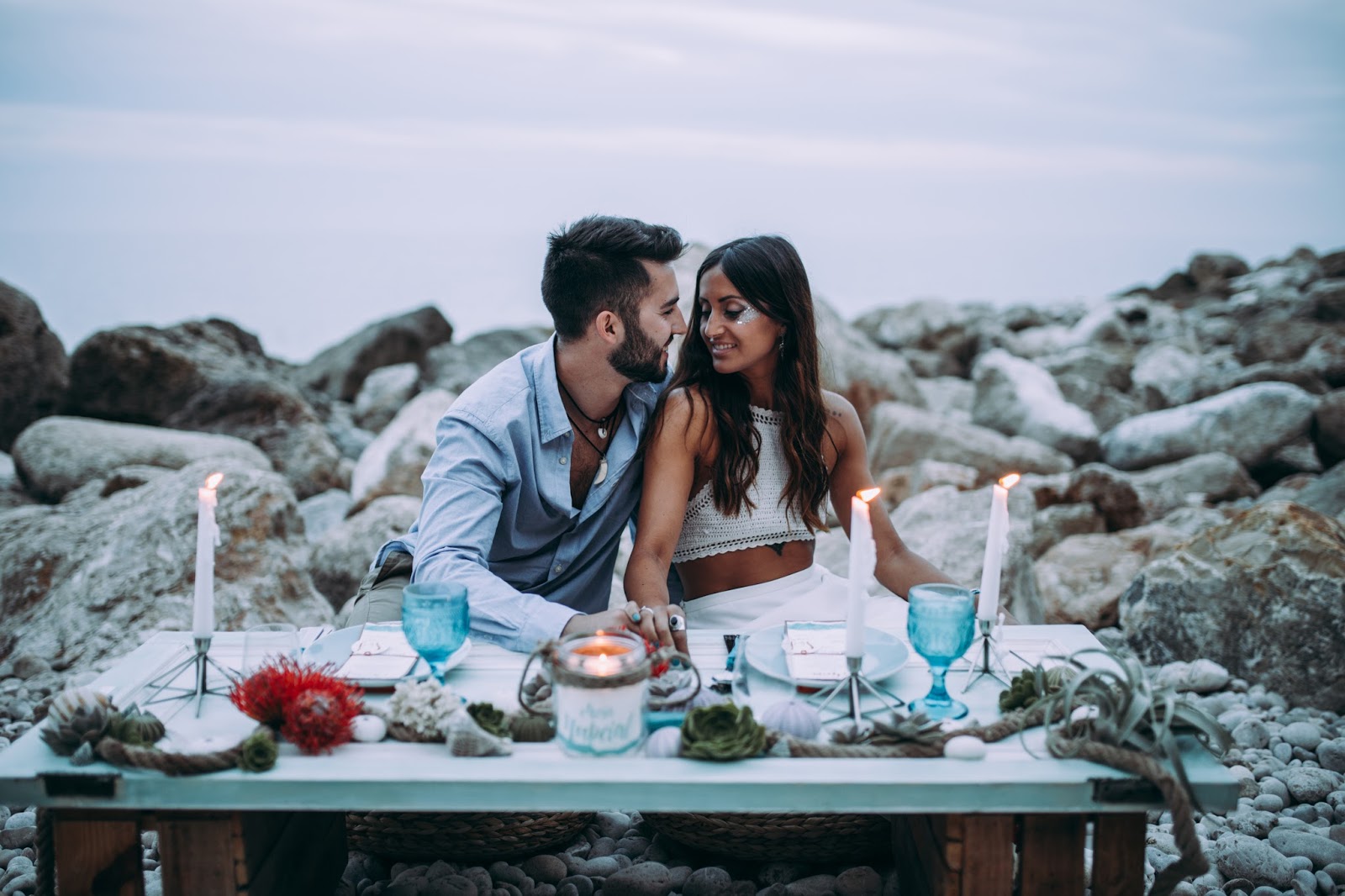 El editorial Waves in love es de los más bonitos que he visto nunca. El entorno sin duda es uno de mis sitios preferidos. Me encanta la Costa Blanca pero en especial Benitatxell es un lugar mágico. Un editorial de inspiración mediterránea donde los novios se fusionan a la perfección con el escenario. La novia lleva un increíble vestido dos piezas con un cuerpo con espalda de encaje y plumeti que al caer la noche cambia por un top de punto. Es en ese momento en el que la pareja se sienta a disfrutar de una romántica cena a la luz de la luna. Un editorial romántico y muy especial que seguro os va a encantar.